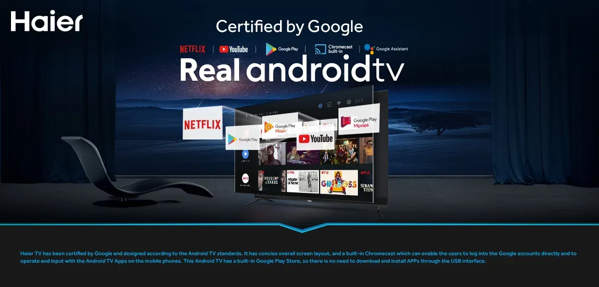 Powered by Google TV, this model offers a smarter and more personalized entertainment experience. You can easily access popular streaming apps like YouTube, Netflix, and Prime Video directly from the Google Play Store. Built-in Google Assistant allows you to control the TV with voice commands, search content, and manage smart home devices effortlessly. Chromecast built-in makes it simple to cast videos, photos, and apps from your smartphone directly to the TV screen.