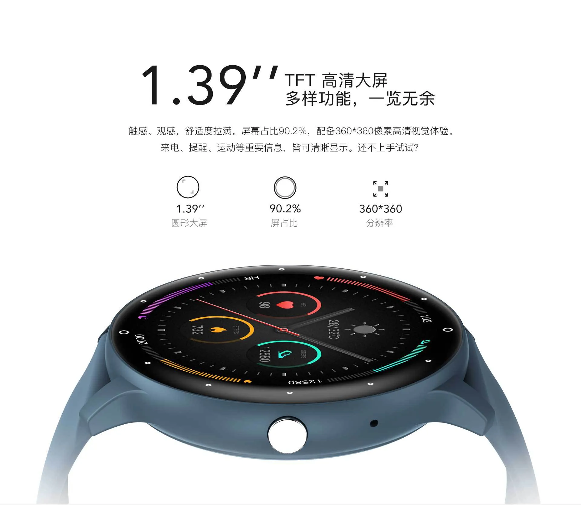 • Screen Size: 1.39-inch square display